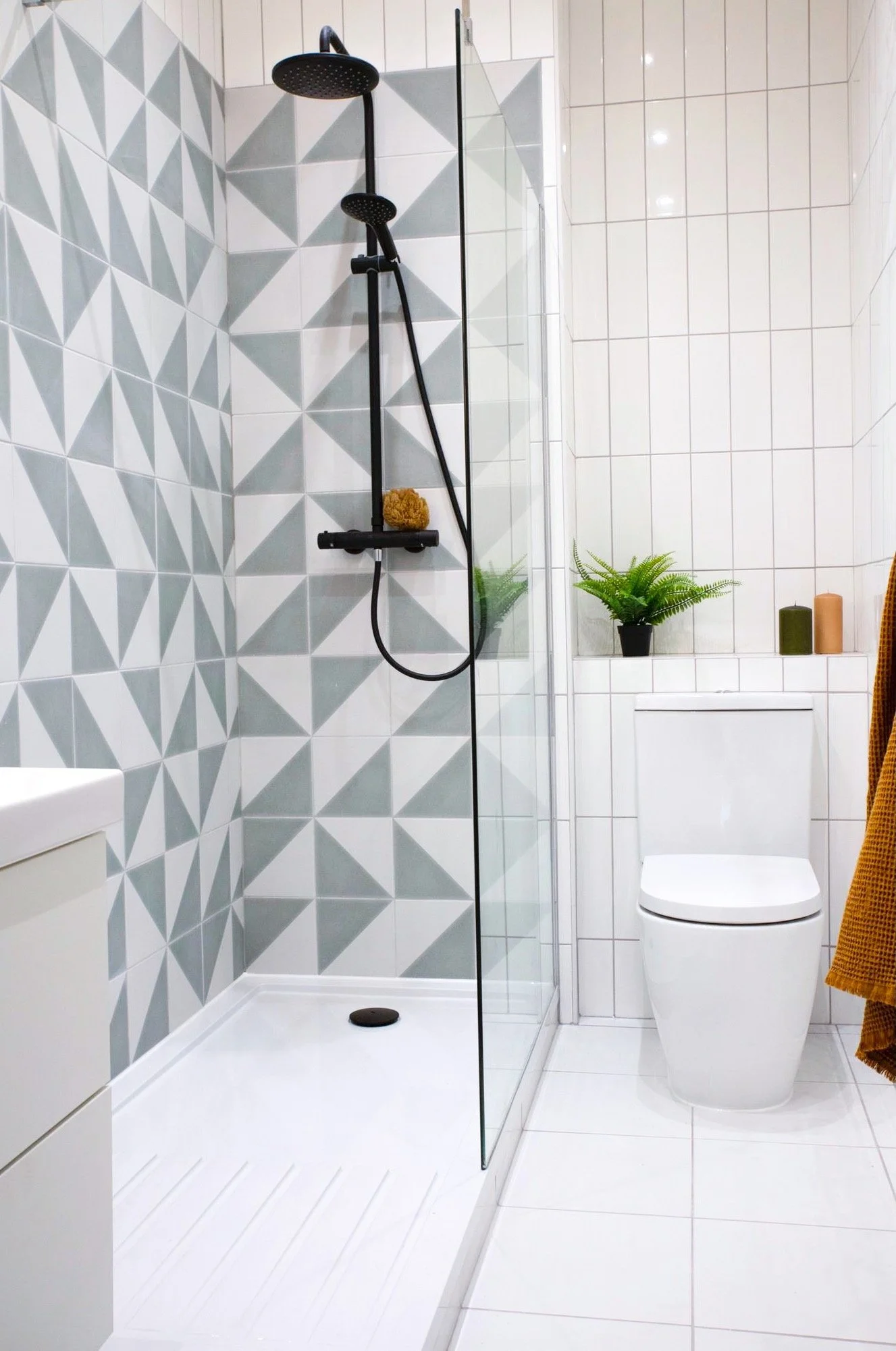 Chose matt black accessories and geometric tiles for a boutique hotel feel