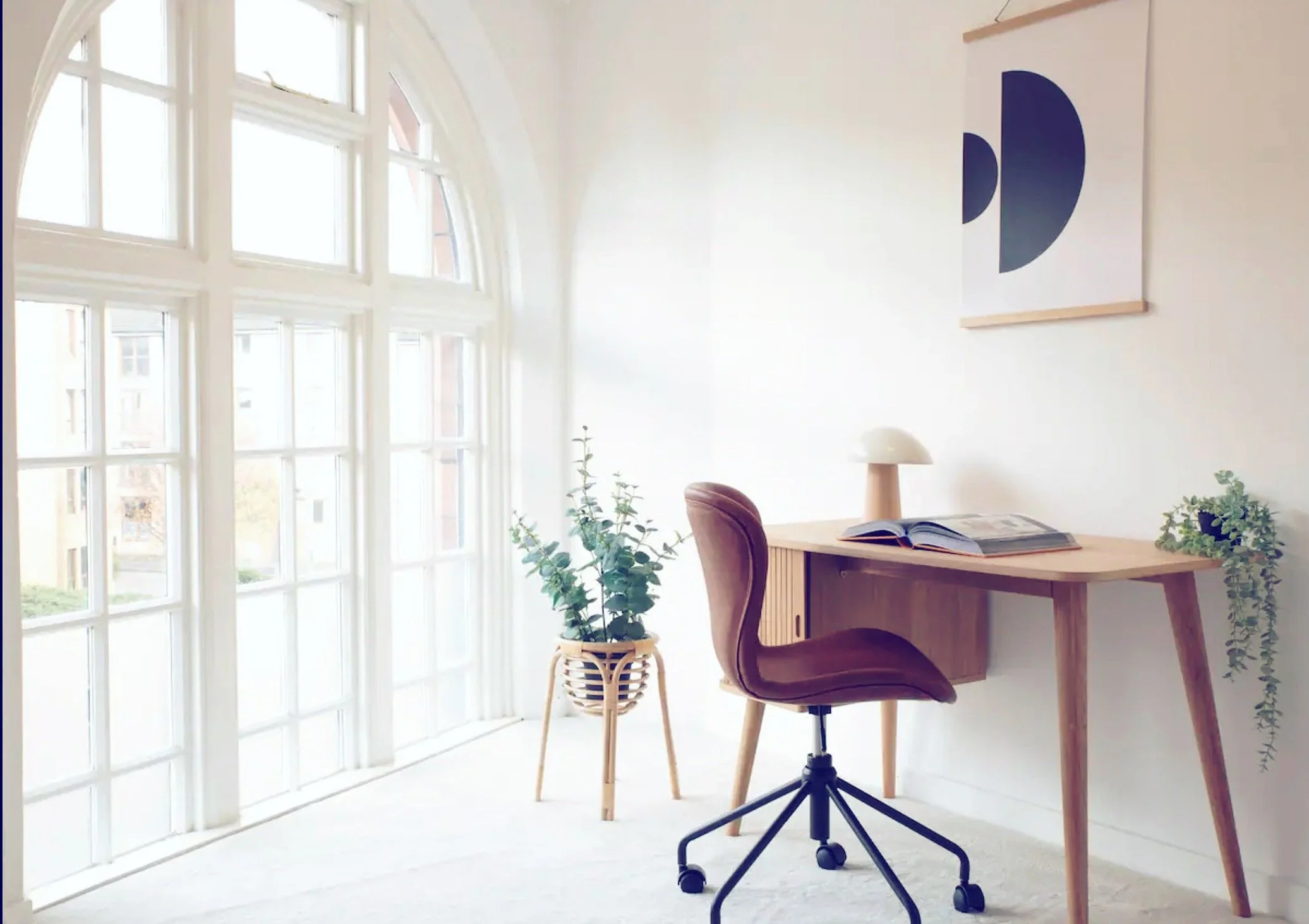 Converted a disused nook into a home office with statement historical windows — one of the flat’s standout features